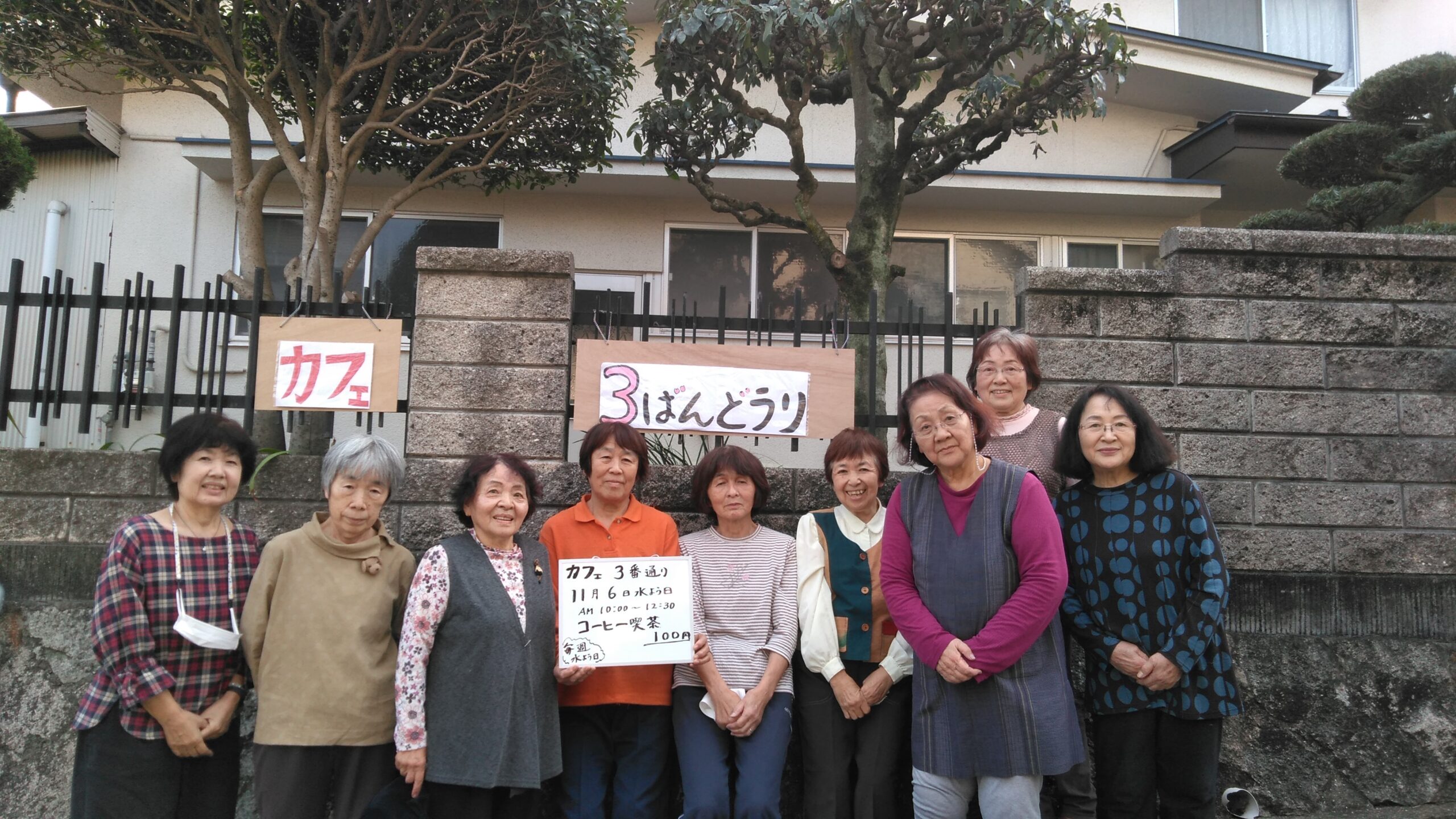毎週水曜日、向陽町「カフェ3番通り」10時~12時30分、コーヒー・お茶・茶菓子等で100円です。フリーマーケットもあります。